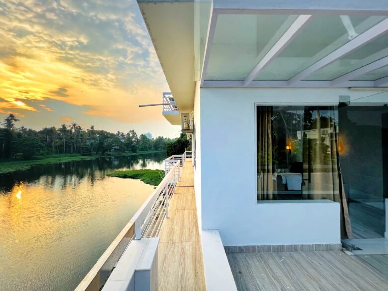 Stunning waterfront location with beautiful interior space, located on the shores of Muttar River around lush green coconut trees.